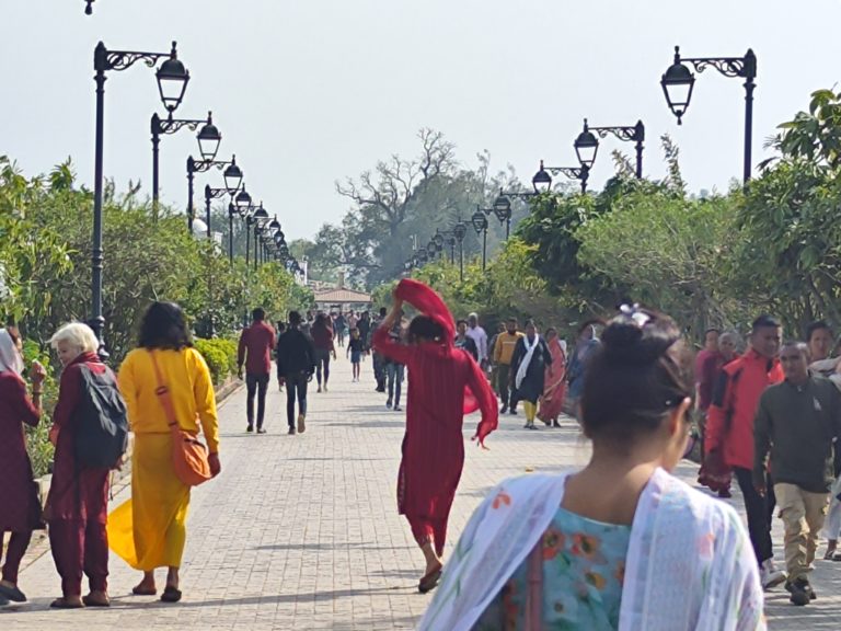 Den emotionalen Höhepunkt erreichte unsere Reise an der „Ewigen Friedensflamme“. Während die Sonne langsam tiefer sank und den Himmel in ein tiefes Orange tauchte, saßen wir gemeinsam mit Baba im Gras. Wir meditierten kurz, die Wärme der Flamme im Gesicht, während um uns herum das Leben in seiner reinsten Form pulsierte. In diesem Moment wurde uns klar: Lumbini ist nicht nur eine archäologische Stätte oder ein touristisches Ziel. Es ist ein Kraftort, der einen daran erinnert, dass Erleuchtung kein ferner Mythos ist, sondern ein Samenkorn, das in jedem von uns schlummert. Als wir schließlich zum Auto zurückkehrten und die Dunkelheit über das Terai hereinbrach, nahmen wir ein Stück dieser Stille mit zurück in den Ashram – eine innere Ruhe, die auch der holprige Rückweg nicht erschüttern konnte.